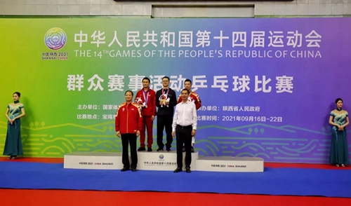 2021年,在以“全民全运同心同行”为口号的第十四届全运会中,群众项目乒乓球比赛组别得到扩展。在群众项目乒乓球40-49岁组比赛中,市台联理事、上海中医药大学公共健康学院副院长、上海市岳阳中西医结合医院肿瘤科副主任医师谢国群成为男子单打项目季军得主。